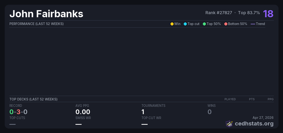 | 🌌 Saturday Night Commander at Cosmic Games! (3-4) Mar 08, 2026 | 15/19 | 0-3-0 | 18 | |