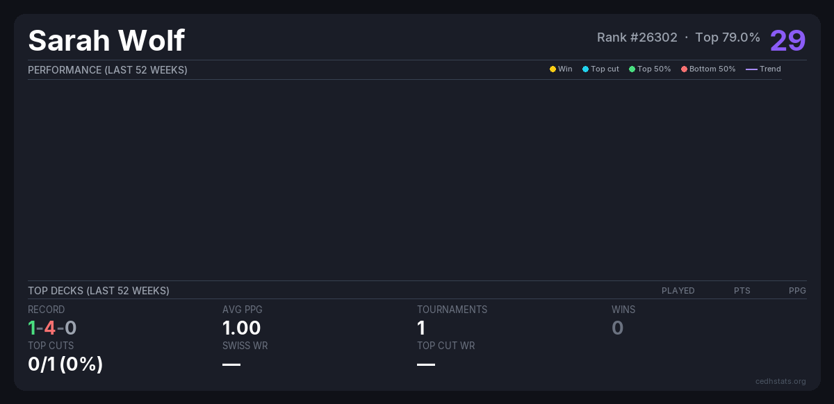 | Tournament | Deck | Result | Record | PPG | Points ? |