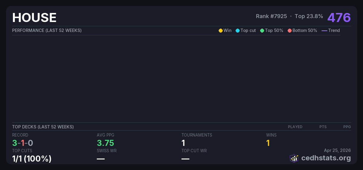 | Tournament | Deck | Result | Record | PPG | Points ? |