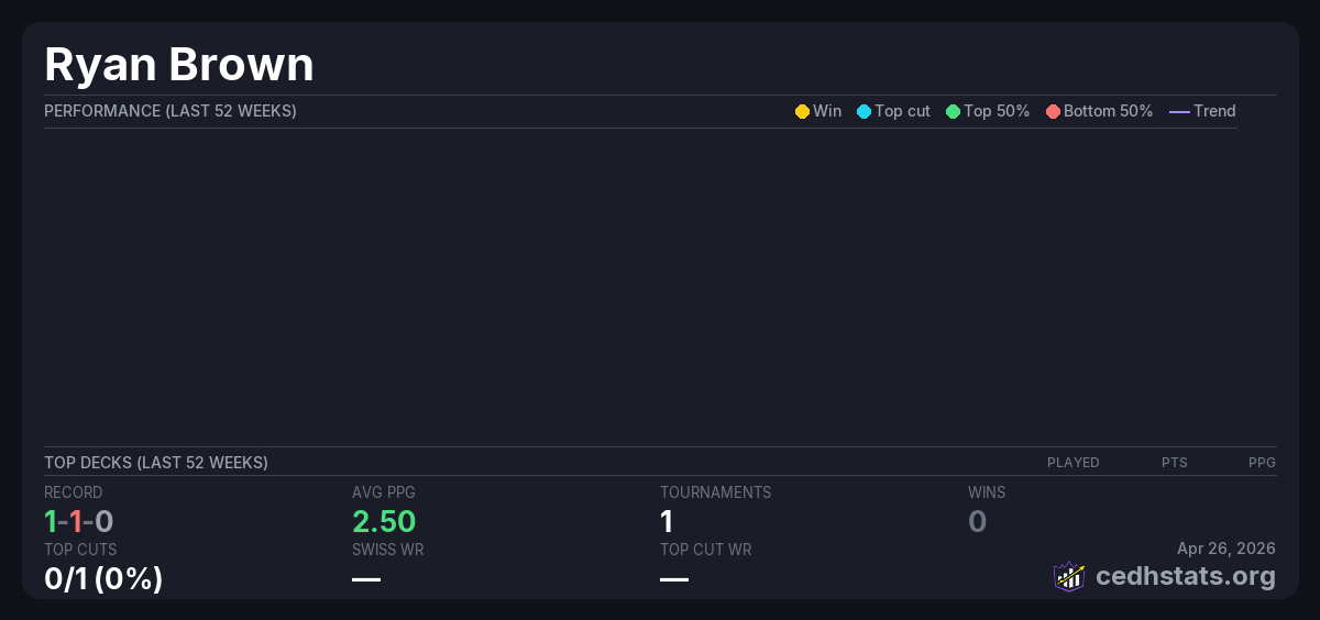 | Beat The House Jul 12, 2025 · 25 players | Invalid pairing | 12/25 | 1-1-0 | 2.50 | — |