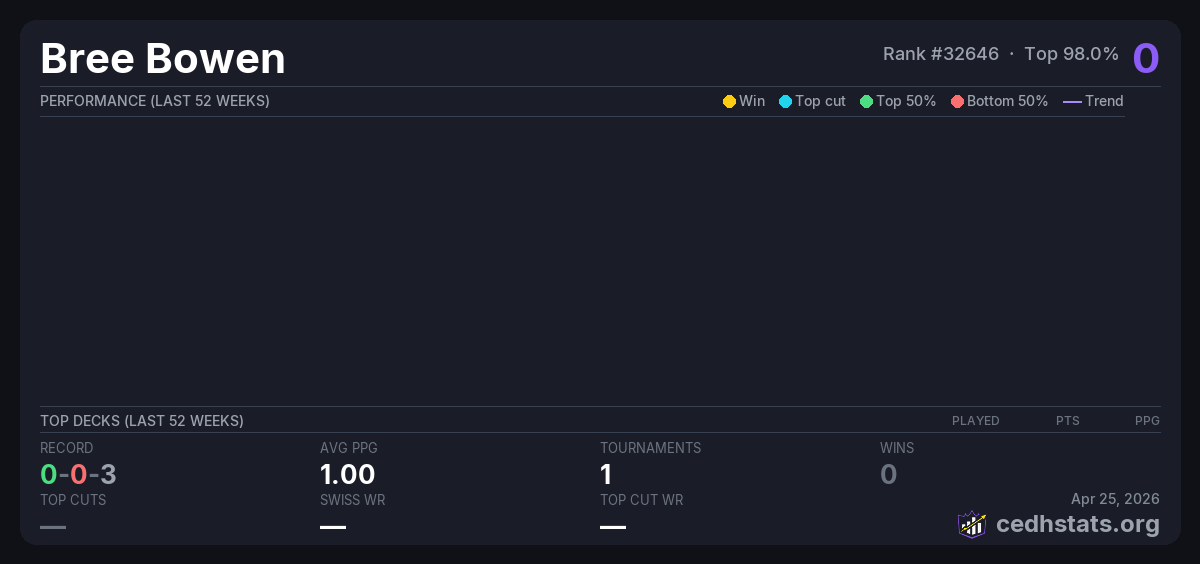 | Lunar New Year Celebration Commander Event Mar 07, 2026 · 21 players | 21/21 | 0-0-3 | 1.00 | 1 |