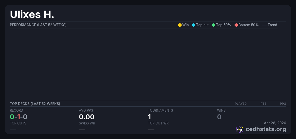 | Tournament | Deck | Result | Record | PPG | Points ? |