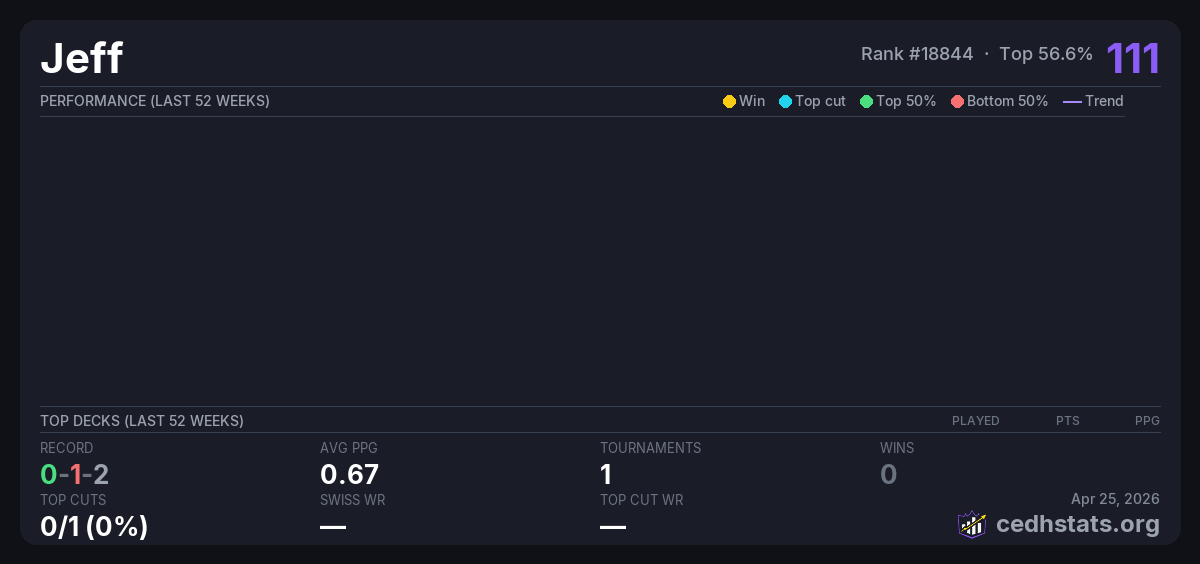 | Mid Commander 28/11 Nov 28, 2025 | Invalid pairing | 7/20 | 0-1-2 | 111 |