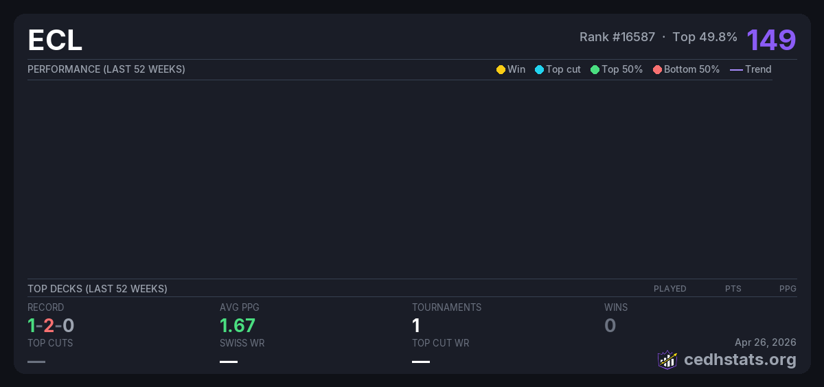 | Tournament | Deck | Result | Record | PPG | Points ? |
