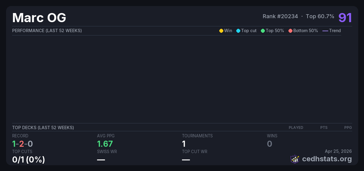 | Tournament | Deck | Result | Record | PPG | Points ? |
