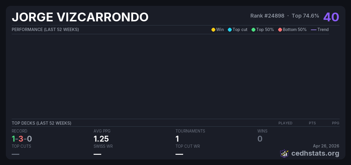 | EDH BRACKET 3 Aug 30, 2025 · 21 players | Invalid pairing | 14/21 | 1-3-0 | 1.25 | 40 |