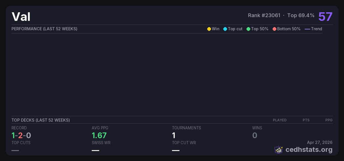 | Tournament | Deck | Result | Record | PPG | Points ? |