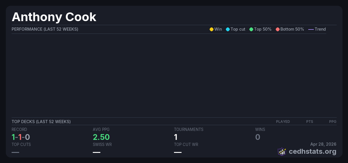 | CMFNM Aug 02, 2025 · 39 players | — | 17/39 | 1-1-0 | 2.50 | — |