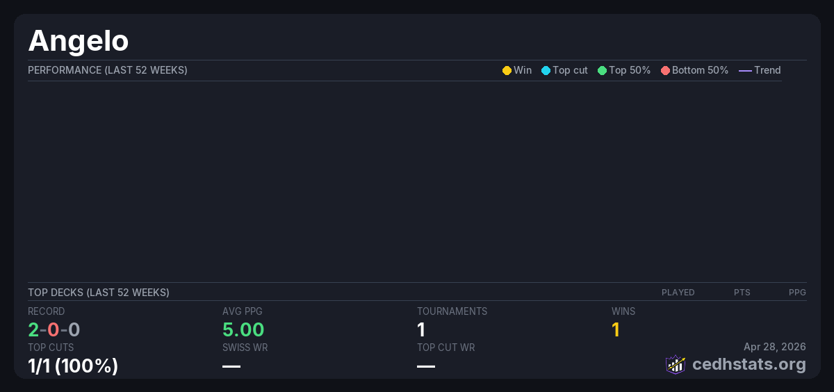 | Tournament | Deck | Result | Record | PPG | Points ? |