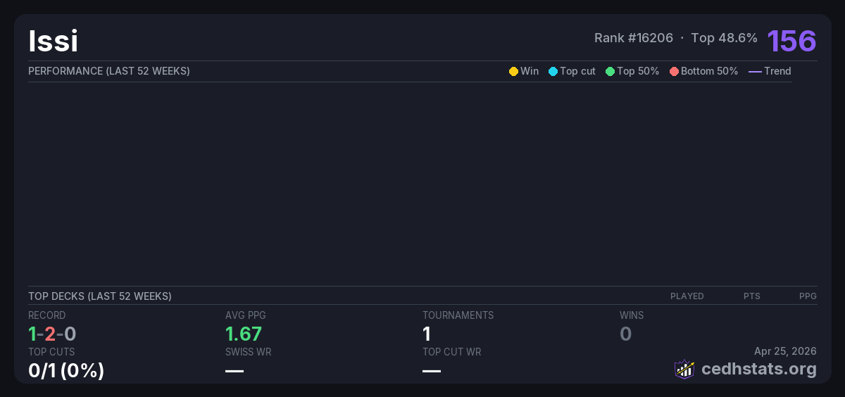 | Tournament | Deck | Result | Record | PPG | Points ? |