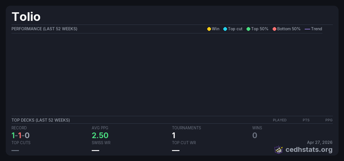 | Tournament | Deck | Result | Record | PPG | Points ? |