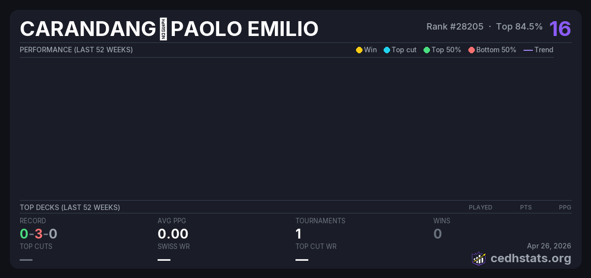 | Bracket 3 Commander Sep 21, 2025 | — | 16/20 | 0-3-0 | 16 |