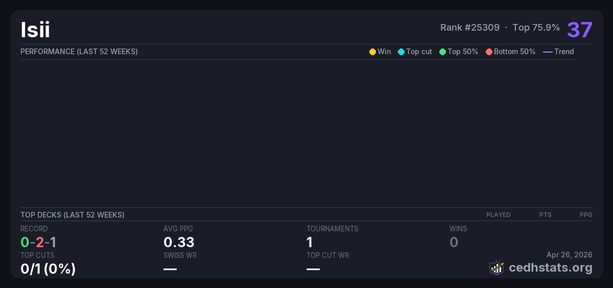 | Tournament | Deck | Result | Record | PPG | Points ? |