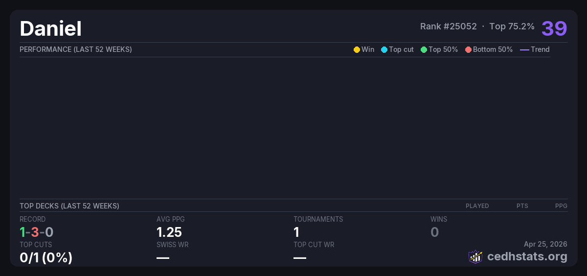 | IQ December Dec 13, 2025 · 26 players | 17/26 | 1-3-0 | 1.25 | 39 |