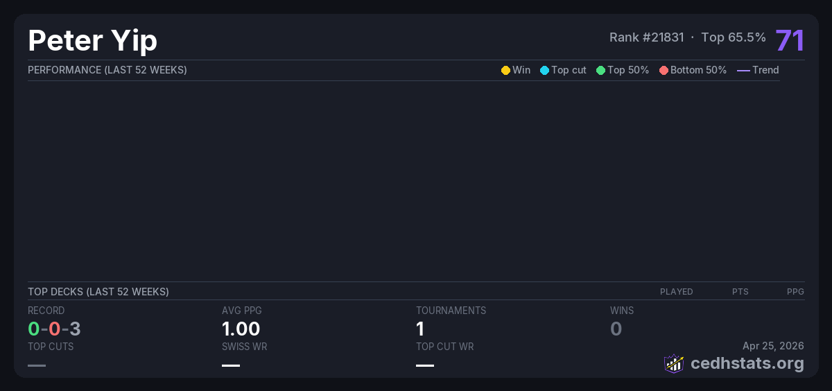 | Saturday Night Commander @ Beyond Odyssey! Jan 31, 2026 | 13/24 | 0-0-3 | 71 | |