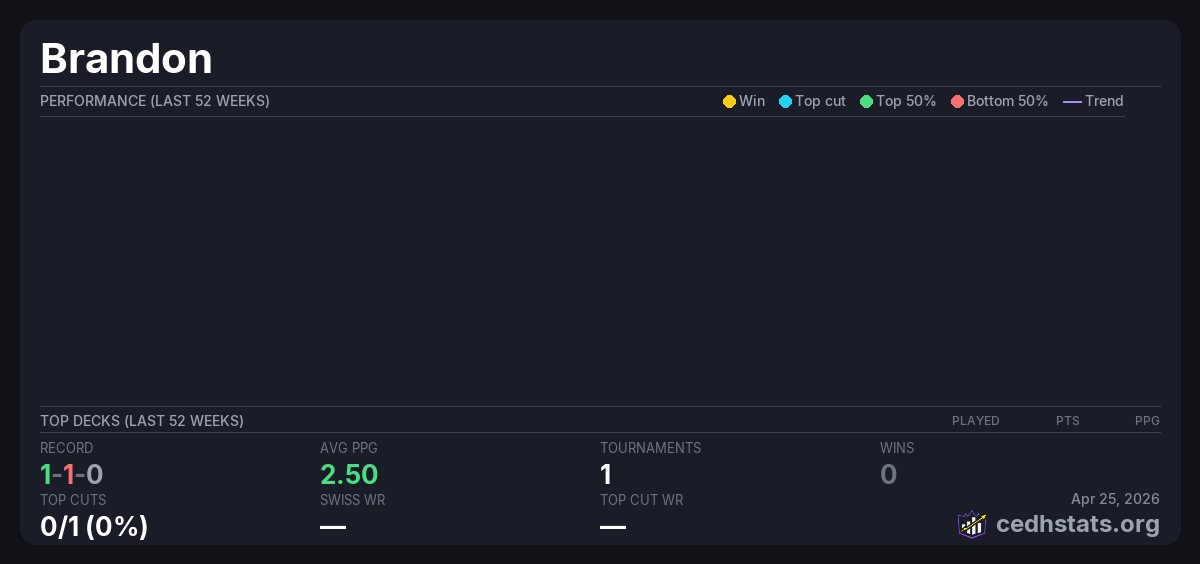 | Tournament | Deck | Result | Record | PPG | Points ? |