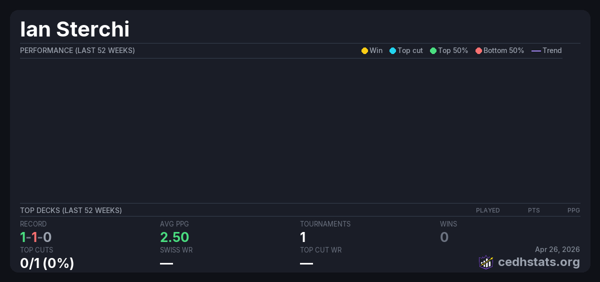 | Tournament | Deck | Result | Record | PPG | Points ? |