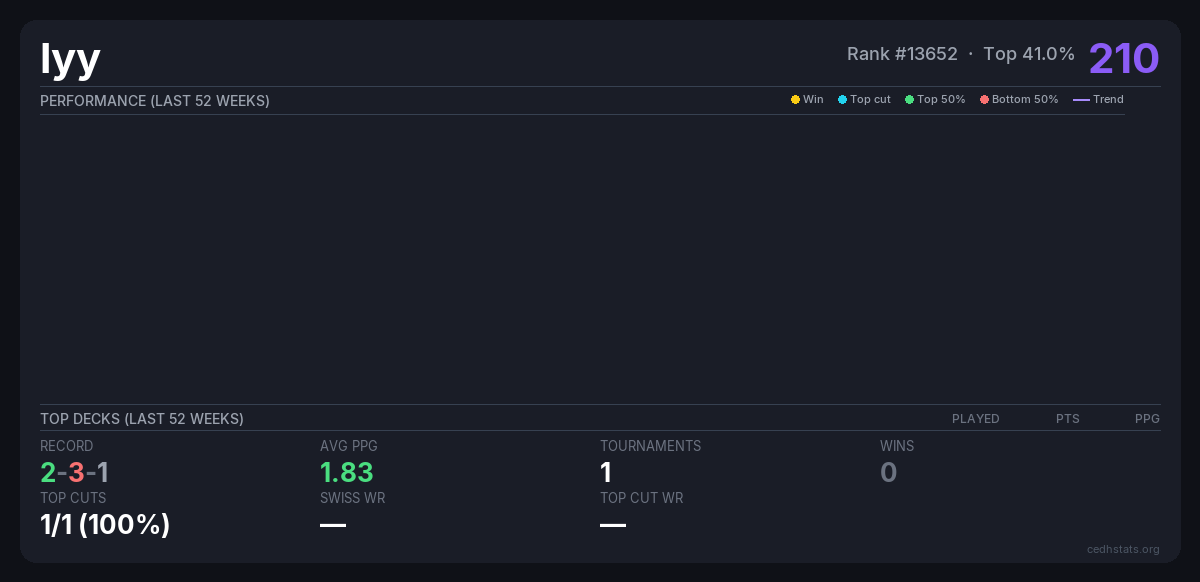 | Tournament | Deck | Result | Record | PPG | Points ? |