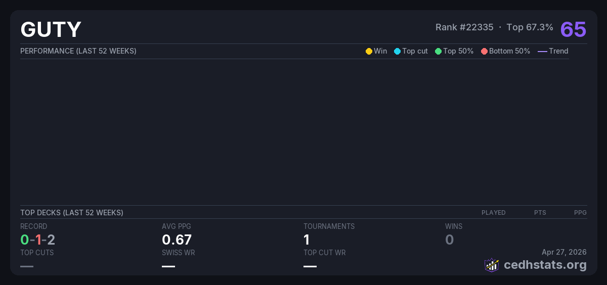 | Tournament | Deck | Result | Record | PPG | Points ? |