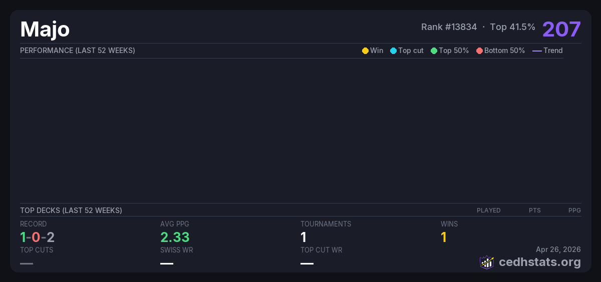 | Commander Arasco Feb 08, 2026 | 1/16 | 1-0-2 | 207 | |