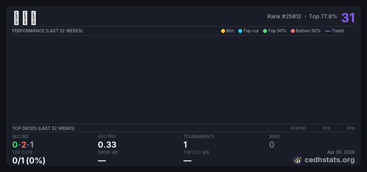 | Tournament | Deck | Result | Record | PPG | Points ? |