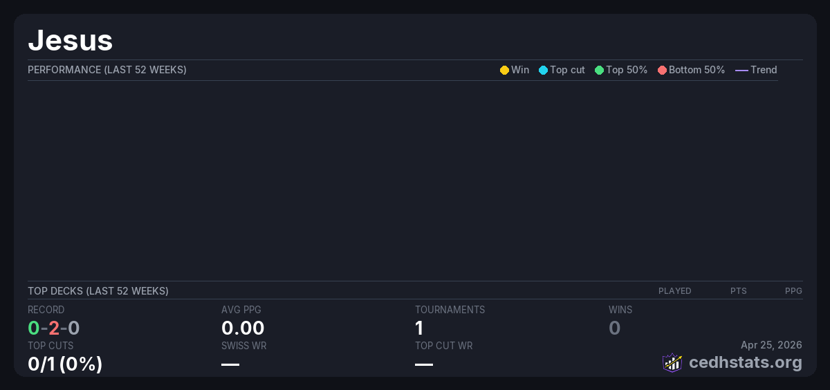 | Tournament | Deck | Result | Record | PPG | Points ? |