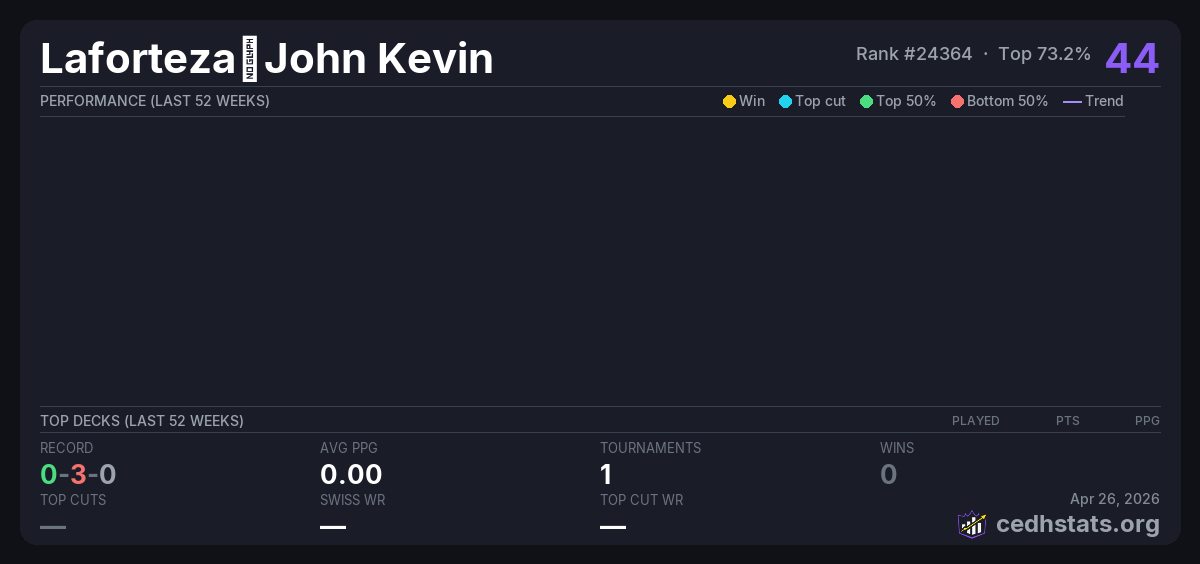 | b3 casuals Feb 08, 2026 · 16 players | 10/16 | 0-3-0 | 0.00 | 44 |