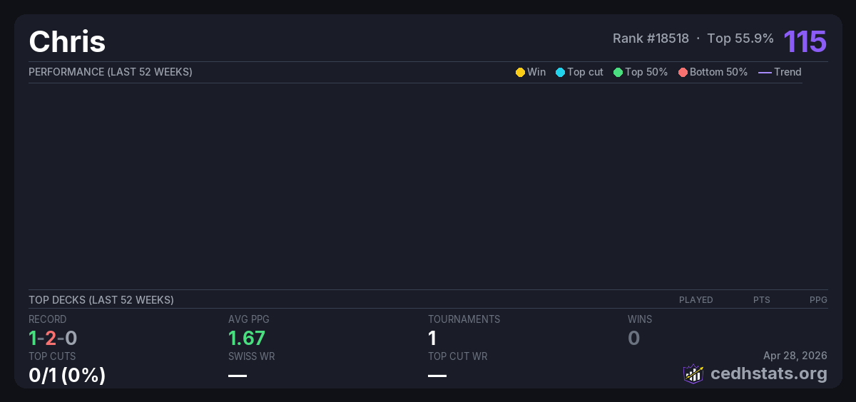 | Tournament | Deck | Result | Record | PPG | Points ? |