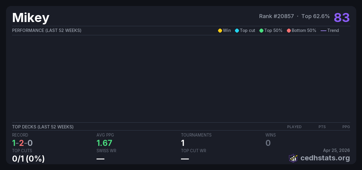 | Tournament | Deck | Result | Record | PPG | Points ? |