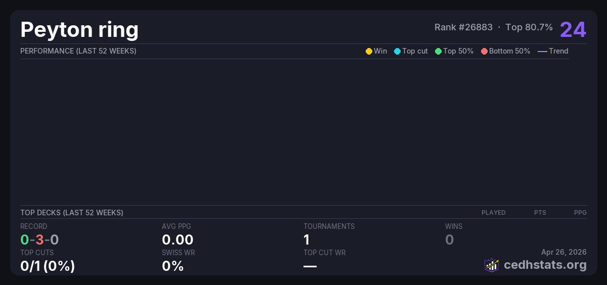 | TGL April Bracket 4 Tournament Apr 25, 2026 · 18 players | — | 14/18 | 0-3-0 | 0.00 | 24 |