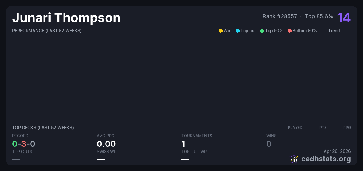 | Draft Pick Commander 04/11 Apr 11, 2026 | 13/16 | 0-3-0 | 14 | |