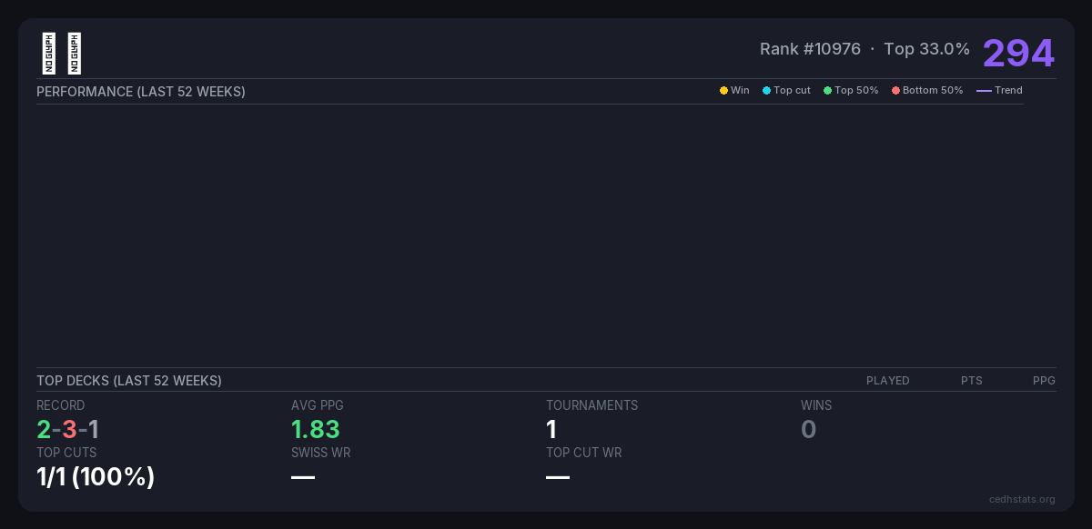 | Tournament | Deck | Result | Record | PPG | Points ? |
