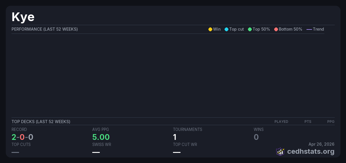 | Tournament | Deck | Result | Record | PPG | Points ? |