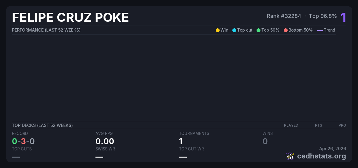 | P.A.R.AA Sep 02, 2025 · 16 players | — | 16/16 | 0-3-0 | 0.00 | 1 |