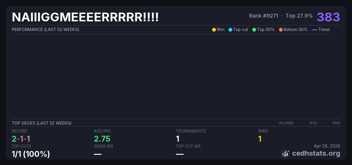 | Tournament | Deck | Result | Record | PPG | Points ? |