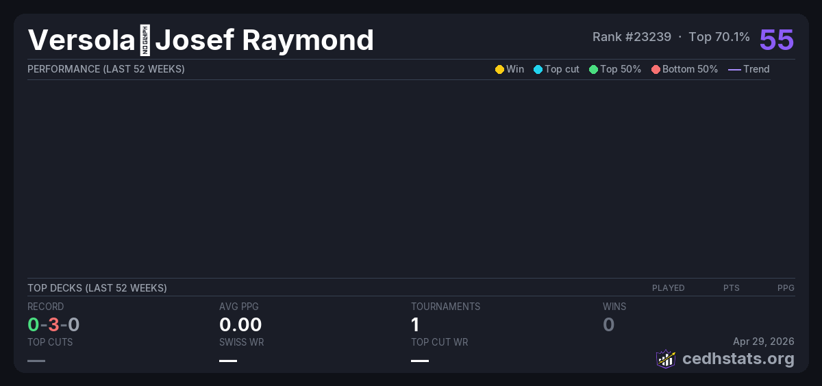 | Bracket Commander Sep 07, 2025 · 19 players | — | 11/19 | 0-3-0 | 0.00 | 55 |