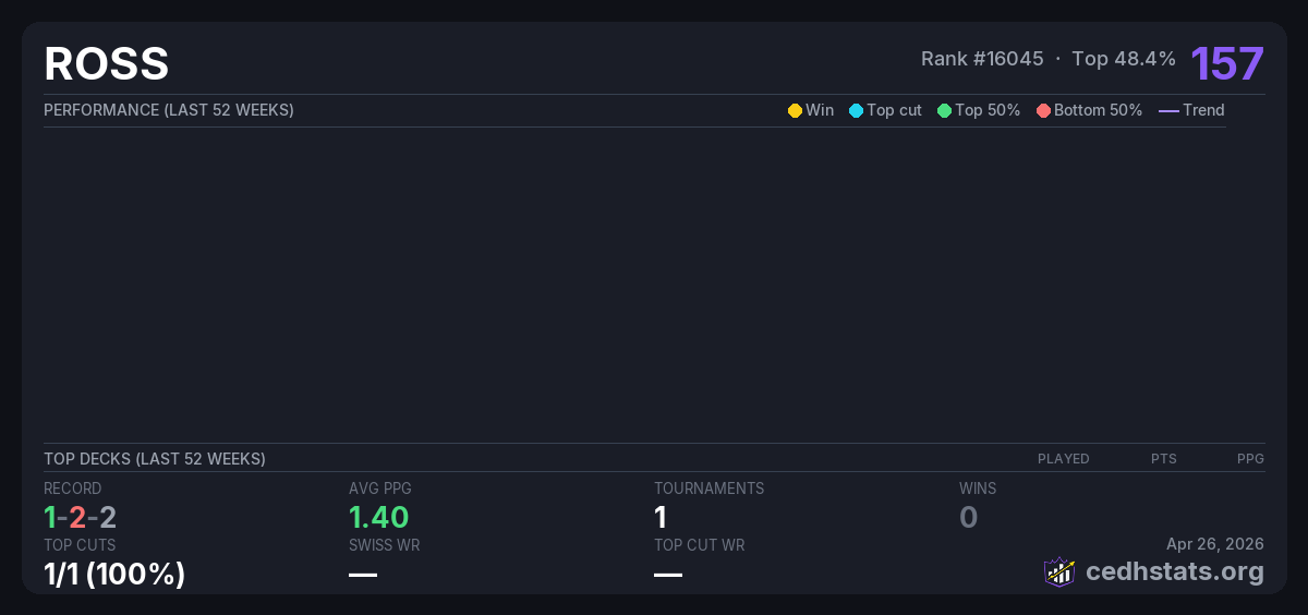 | CEDH SATURDAY Jul 12, 2025 | Invalid pairing | 4/16 | 1-2-2 | 157 |