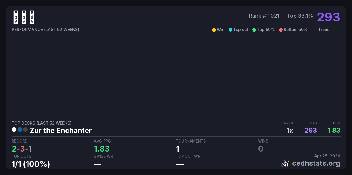 | Command Fest Shanghai 250524 May 24, 2025 | Zur the Enchanter | 15/93 | 2-3-1 | 293 |
