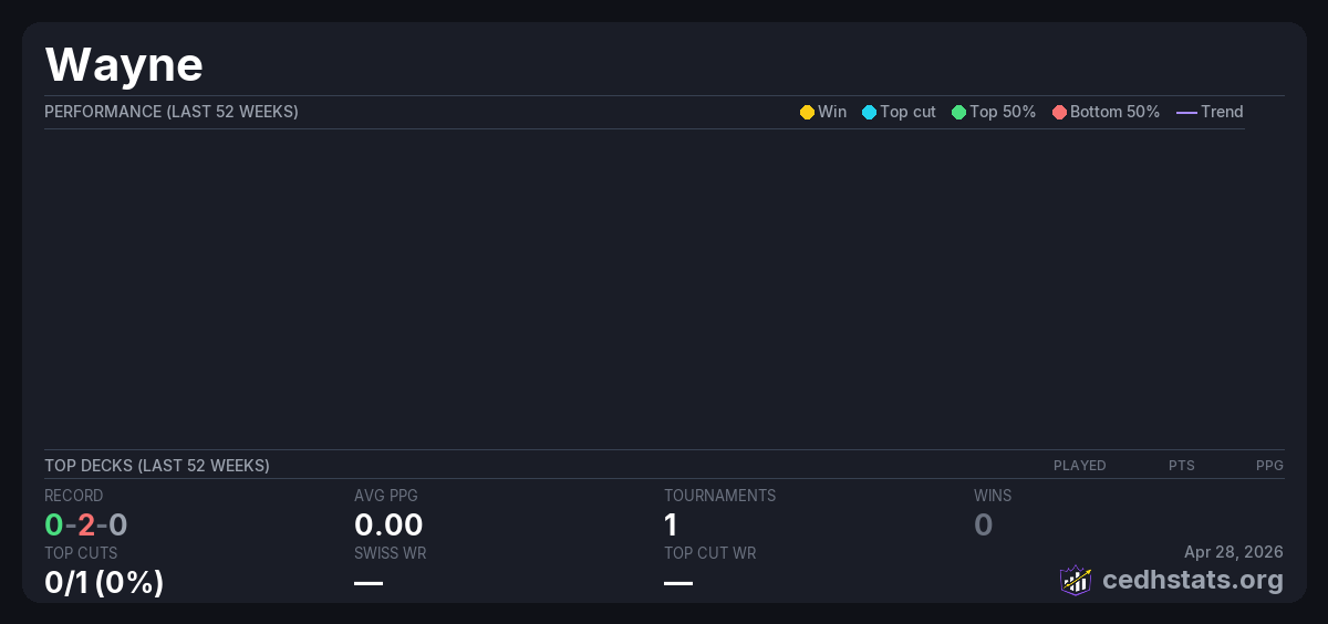 | Tournament | Deck | Result | Record | PPG | Points ? |
