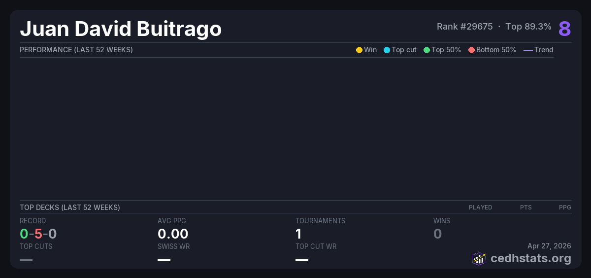| Torneo final de año commander br3 Dec 20, 2025 | 14/16 | 0-5-0 | 8 | |