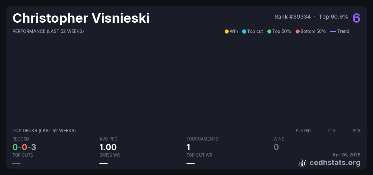 | Commander Tuesday - Nov 11th Nov 12, 2025 | Invalid pairing | 23/26 | 0-0-3 | 6 |
