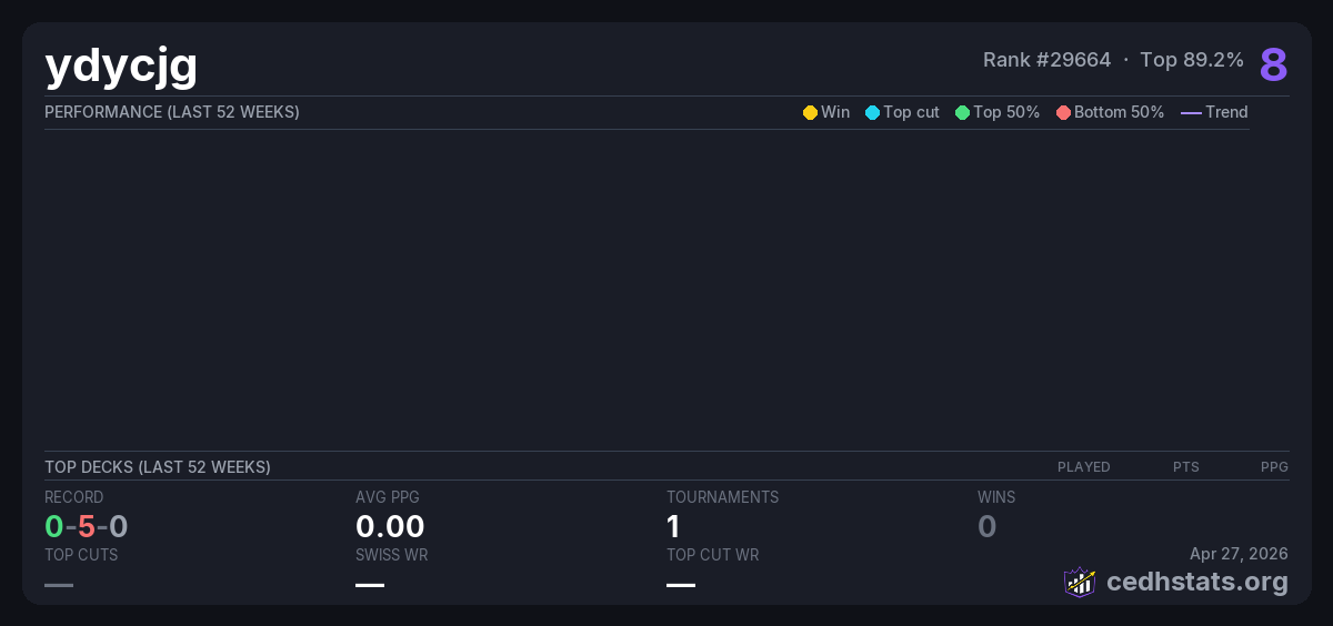 | Tournament | Deck | Result | Record | PPG | Points ? |