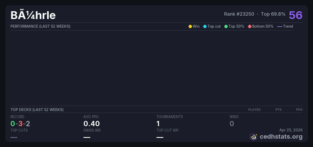 | Commandernight 26.10.2025 Oct 26, 2025 | Invalid pairing | 36/57 | 0-3-2 | 56 |