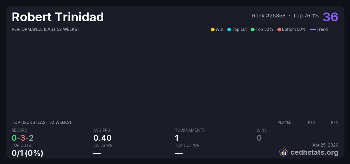 | MTG x Final Fantasy Commander Party Jun 21, 2025 | Invalid pairing | 21/31 | 0-3-2 | 36 |