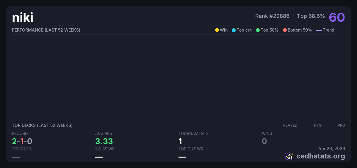 | Tournament | Deck | Result | Record | PPG | Points ? |