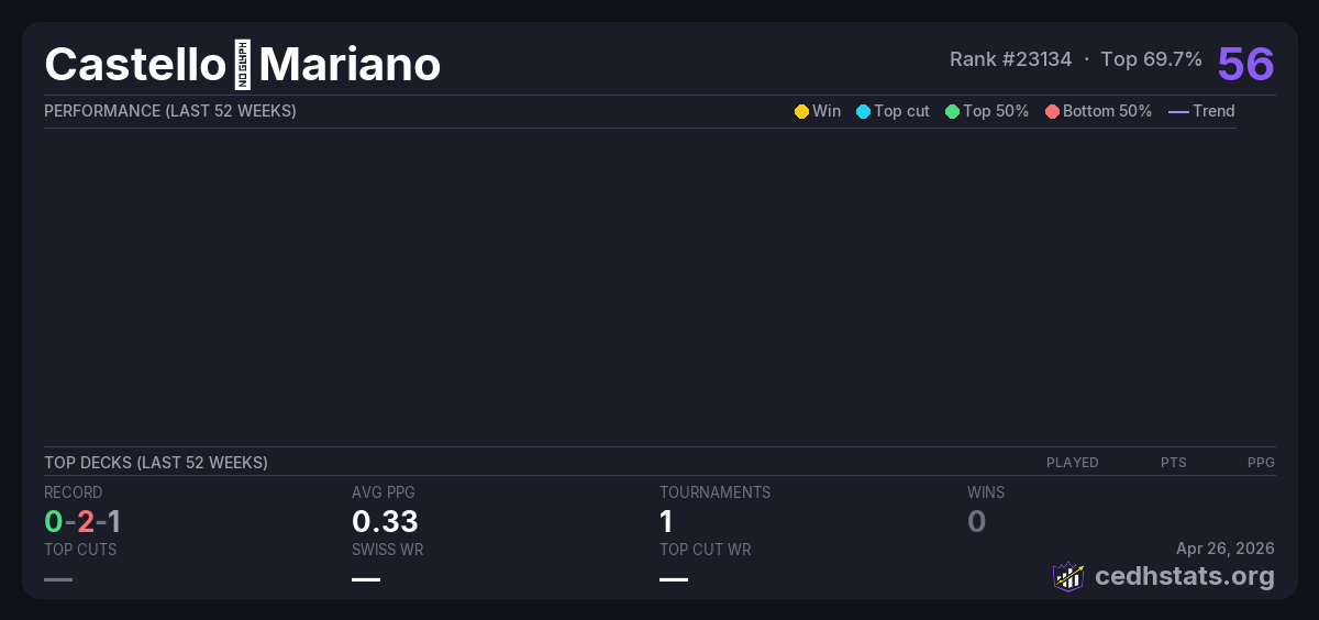 | Cdeh Dec 19, 2025 · 16 players | 9/16 | 0-2-1 | 0.33 | 56 |