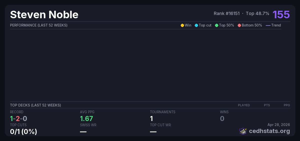 | Store Champ Oct 04, 2025 | Invalid pairing | 5/20 | 1-2-0 | 155 |