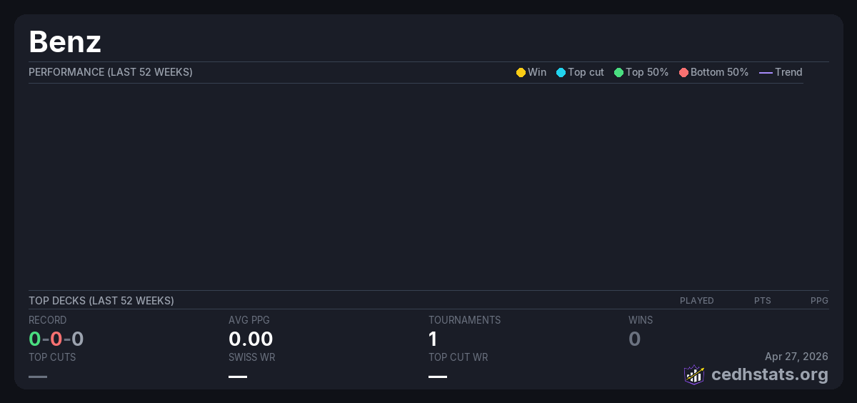 | Goblin Games & Hobby May 24, 2025 · 16 players | Invalid pairing | 16/16 | 0-0-0 | 0.00 | — |