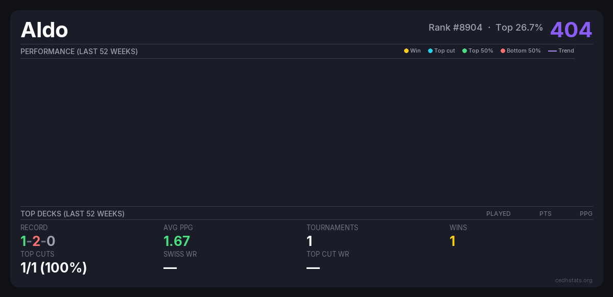 | Tournament | Deck | Result | Record | PPG | Points ? |