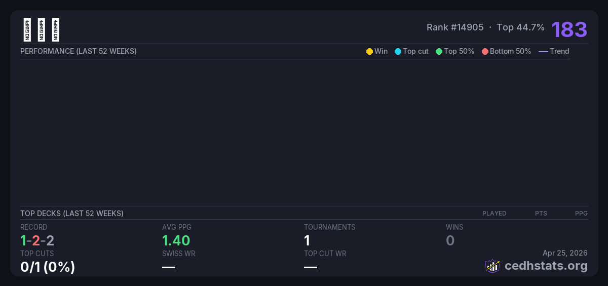 | Tournament | Deck | Result | Record | PPG | Points ? |